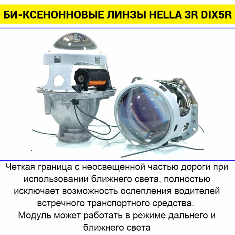 | Подробная комплектация | 2шт Би-ксеноновая линза Dix 5r 2шт Переходные рамки 2шт Кольцо фиксации лампы 2шт Провод переключения ближний дальний |