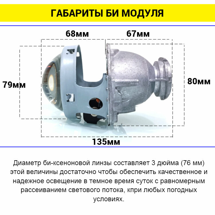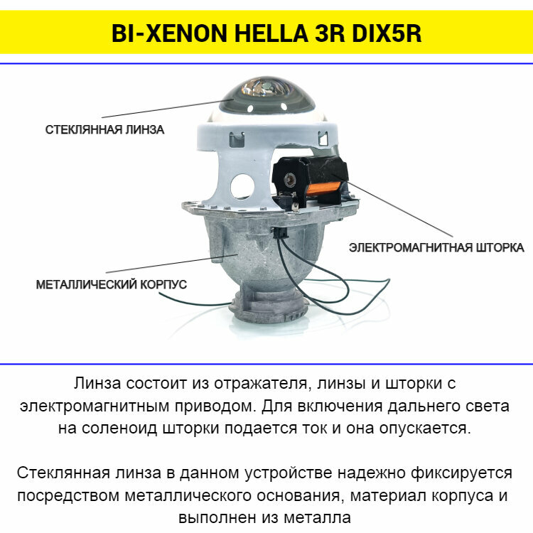 | Подробная комплектация | 2шт Би-ксеноновая линза Dix 5r 2шт Переходные рамки 2шт Кольцо фиксации лампы 2шт Провод переключения ближний дальний |