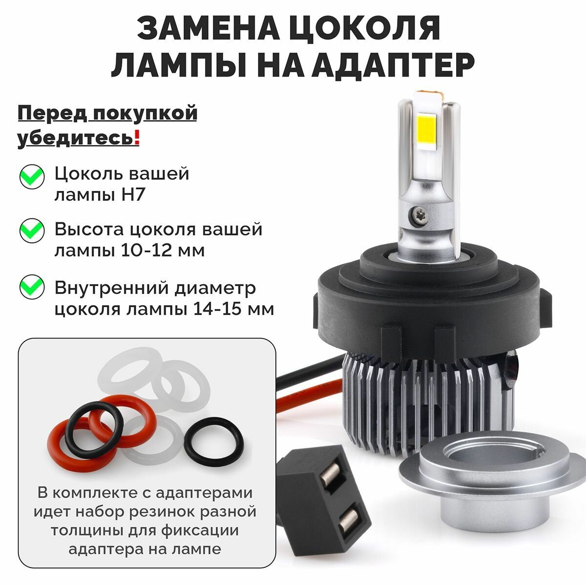 Переходник адаптер (2шт) для установки светодиодных ламп H7 для Kia, Hyundai, Mitsubishi