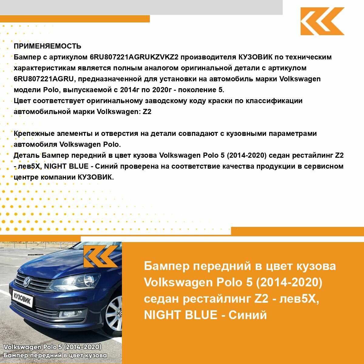 10 цен на Бампер передний в цвет Volkswagen Polo Фольксваген Поло (2014-2020) Z2 - LH5X, NIGHT BLUE - Синий