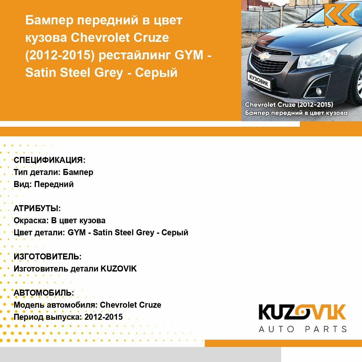 Бампер передний в цвет Chevrolet Cruze (2012-2015) рестайлинг GYM - Satin Steel Grey - Серый 19 047 ₽