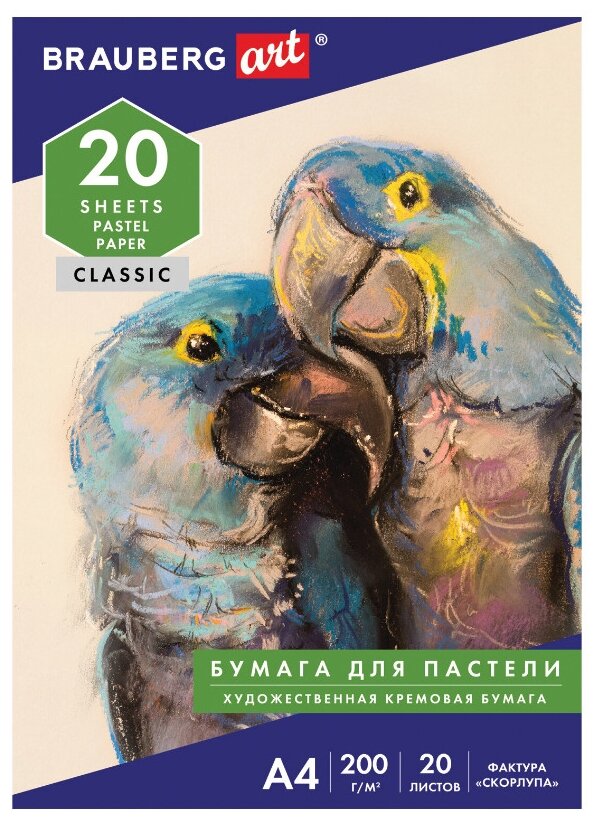 Отзывы на Бумага для пастели А4, 20 л., бумага слоновая кость гознак 200 г/м2, тиснение Скорлупа, BRAUBERG ART, 126306
