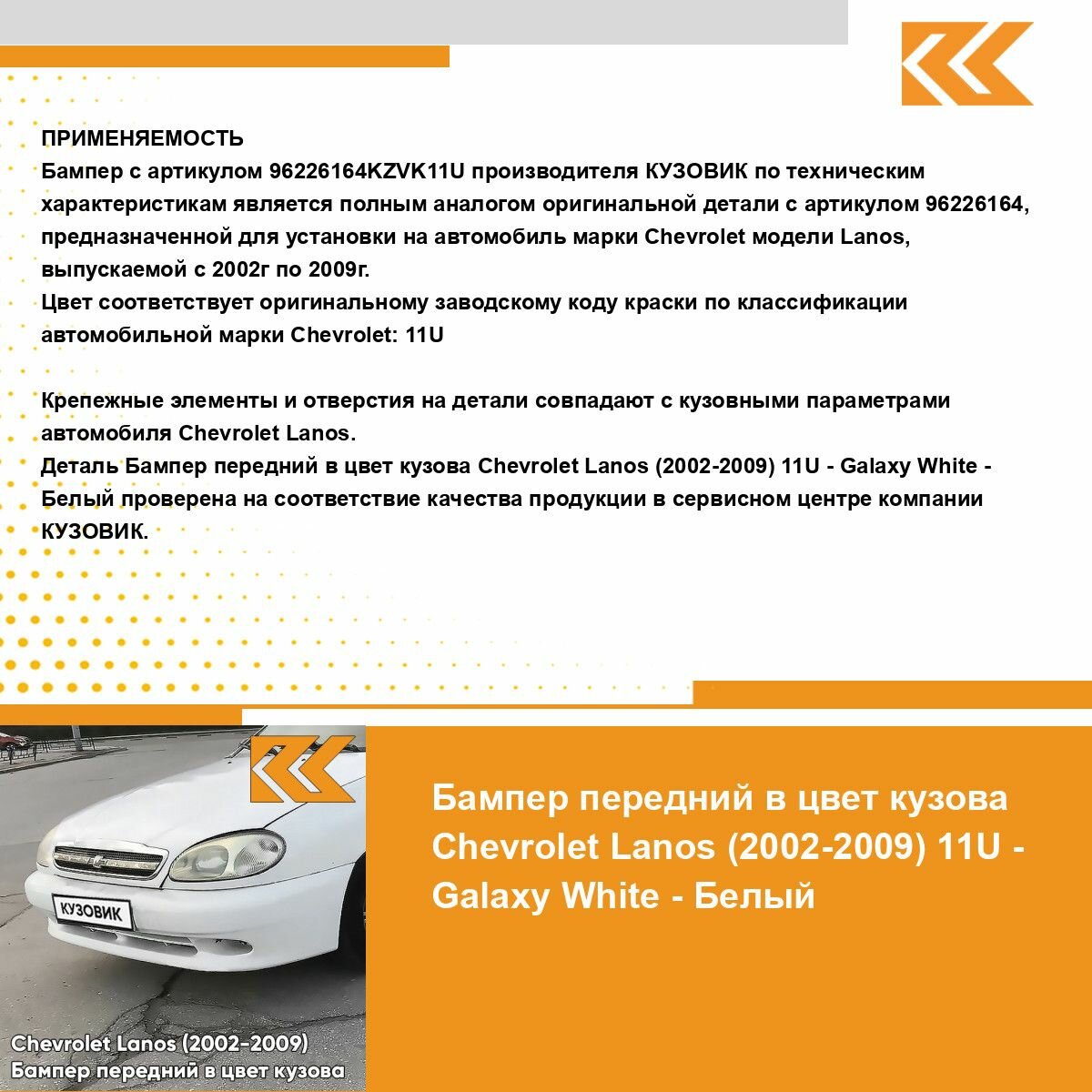 Отзывы на Бампер передний в цвет кузова Шевроле Ланос Chevrolet Lanos (2002-2009) 11U - Casablanca White - Белый