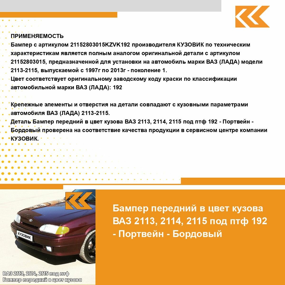 | Подробная комплектация | Бампер передний в цвет кузова ВАЗ 2114 2115 |