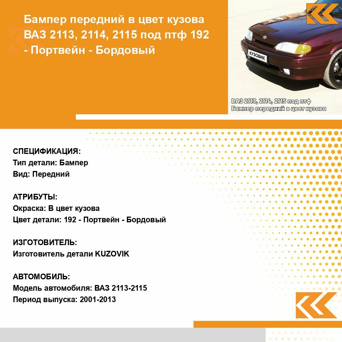 Бампер передний в цвет кузова ВАЗ 2114 2115 2113 под птф 192 - Портвейн - Бордовый информация: