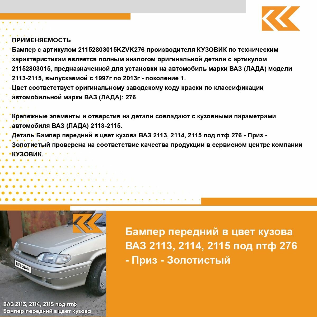Бампер передний в цвет кузова ВАЗ 2114 2115 2113 под птф 276 - Приз - Золотистый информация: