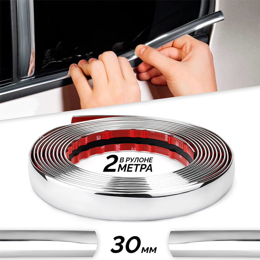 Отзывы на Молдинг хром лента на авто универсальная для кузова, бамперов, порогов ширина 30 мм 2 метра