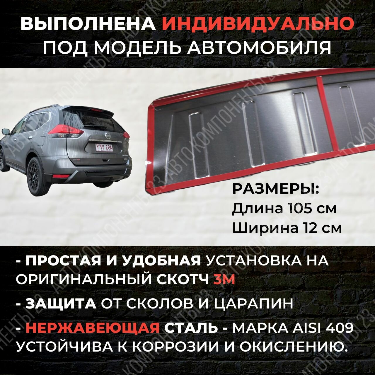 | Дополнительная информация | накладка на задний бампер из нержавеющей стали это стильный и функциональный аксессуар для вашего автомобиля, она предотвращает царапины, сколы и другие повреждения бампер, установка проста, без специальных инструментов, нержавеющая сталь обеспечивает надежную защиту от коррозии, накладка добавляет элегантности и стиля задней части автомобиля, придавая ему уникальный вид |