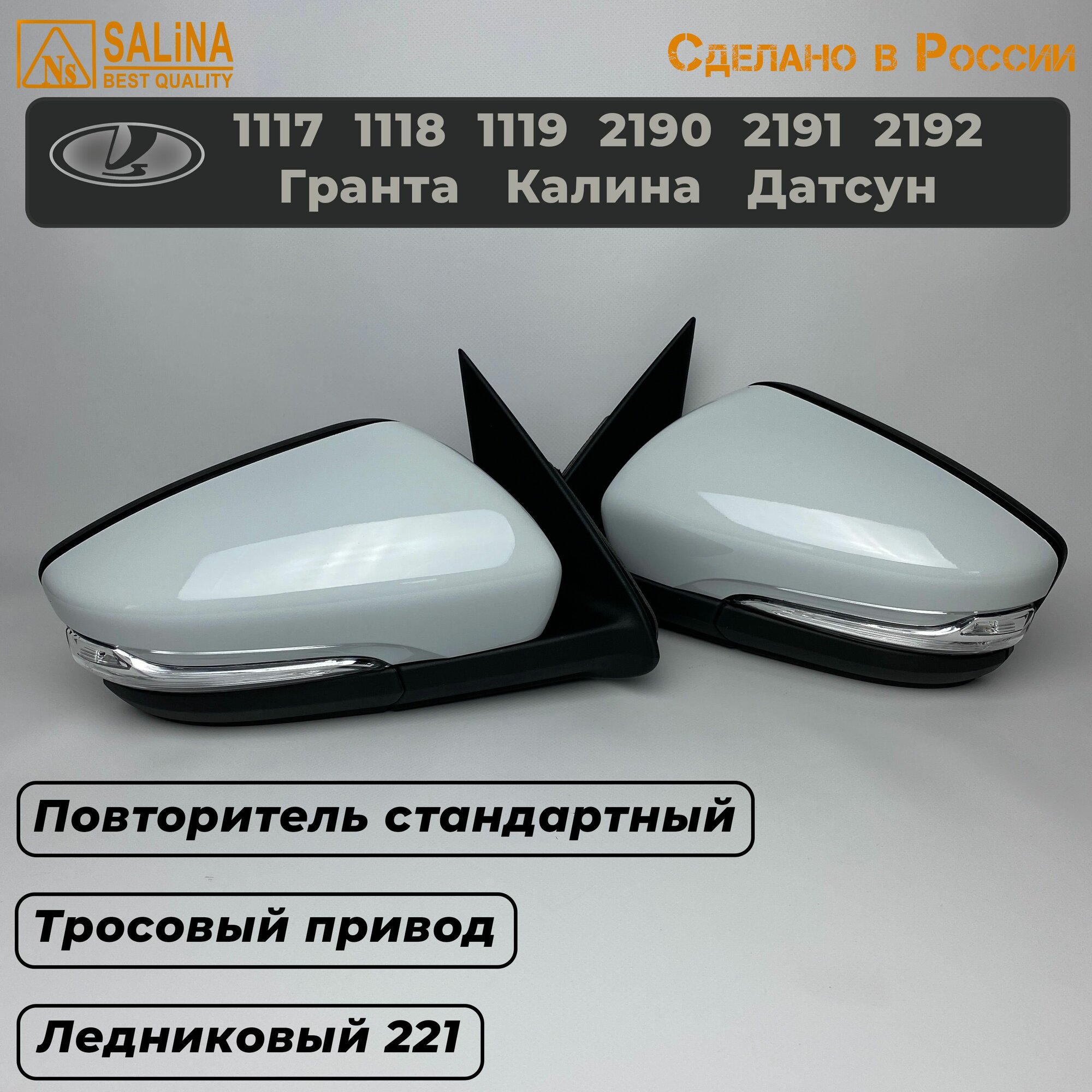 Комплект зеркал с тросовым приводом и повторителем Стандарт на Ваз 2191, 2190, 1117, 1118, 1119, Гранта FL, Калина, Датсун (Ледниковый 221) информация:
