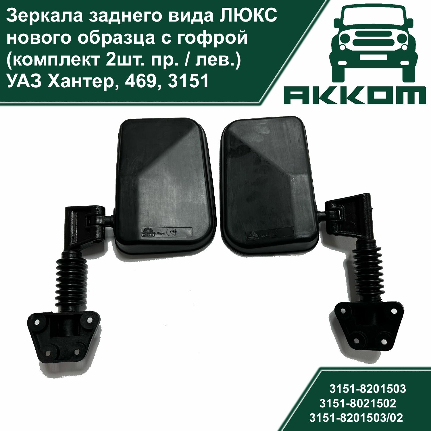 Зеркала заднего вида с ножками УАЗ 469, Хантер, 3151 люкс с гофрой нового образца (комплект 2 шт.) информация: