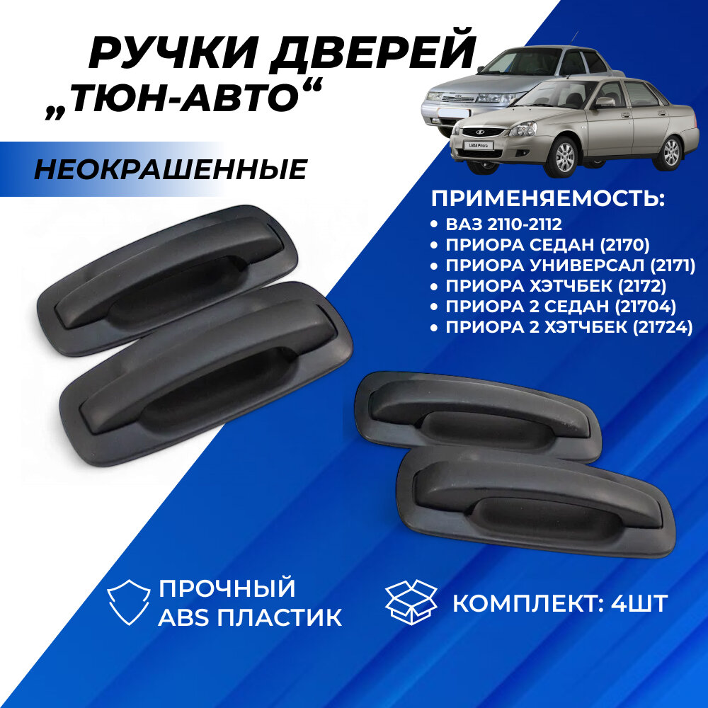 10 цен на Ручки дверей Приора, Приора 2, ВАЗ 2110, 2111-12 передние задние евроручки наружные на левую, правую сторону, евро ручки дверные Тюн-Авто неокрашенные комплект 4шт.