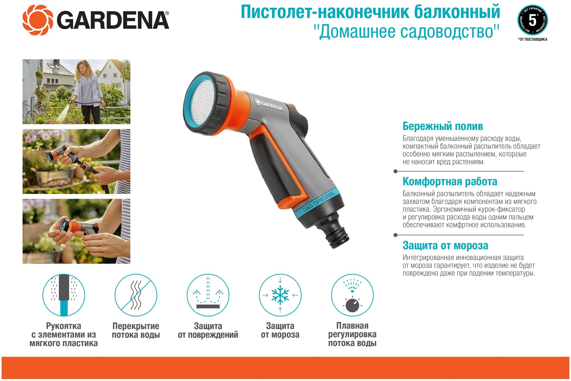 Пистолет GARDENA Домашнее садоводство 18405-20 -наконечник балконный 1 990 ₽