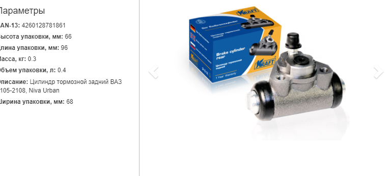 10 цен на Цилиндр тормозной задний KRAFT KT 028400 для LADA 2104-07, 2108-15, 2121