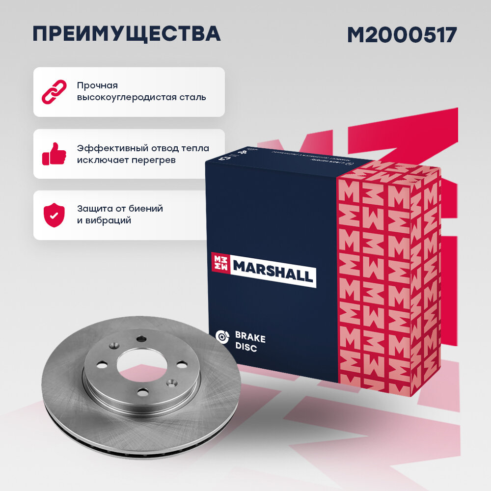 10 цен на Тормозной диск передний MARSHALL M2000517 для Hyundai Solaris II (HCR) 17-, Kia Rio IV (YB, SC, FB) 17- (DF6794 // 51712C8000, 51712C8000, 51712C8000)