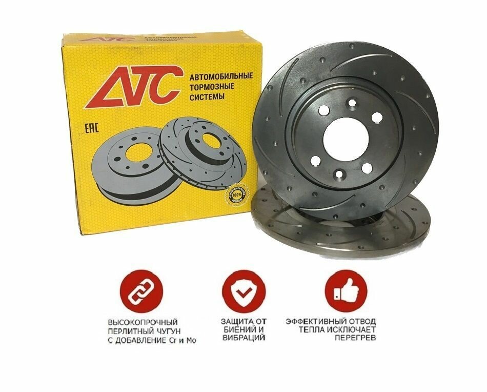 Диски тормозные Гранта Калина ВАЗ 2110 R13 Спорт передние вентилируемые ATC (к-т 2шт)