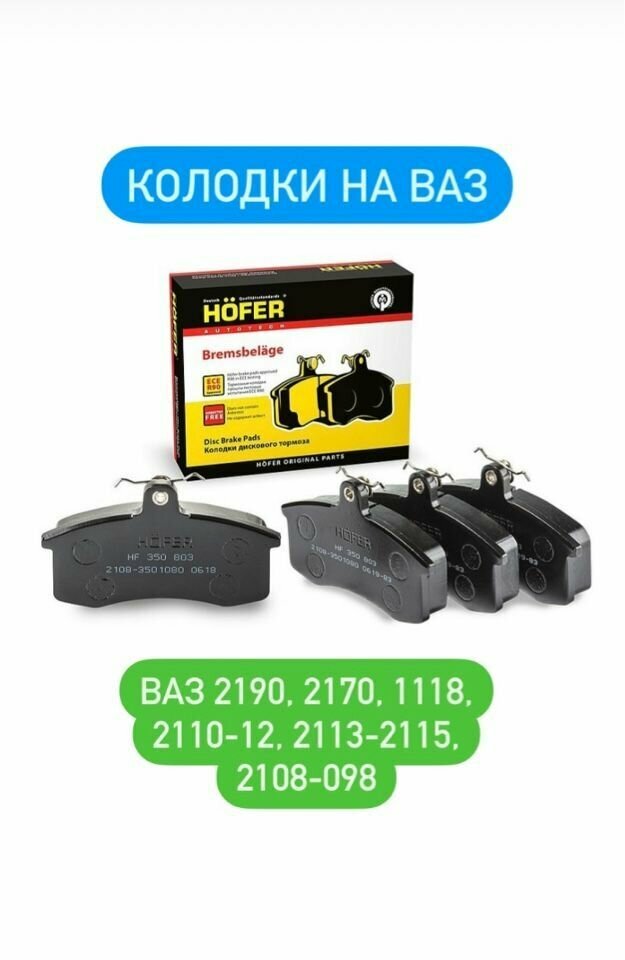 10 цен на Колодки тормозные передние ВАЗ 2190 Гранта, 2170 Приора, 1118 Калина, 2110-2112, 2113-2115, 2108-099 HOFER