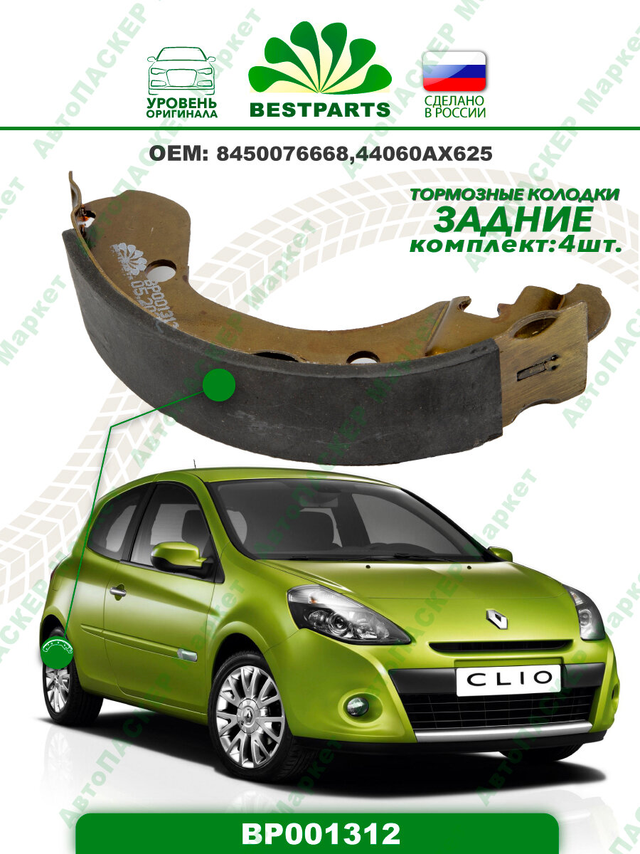 Колодки тормозные LADA Vesta задние, BESTPARTS BP001312 (1 шт.) информация: