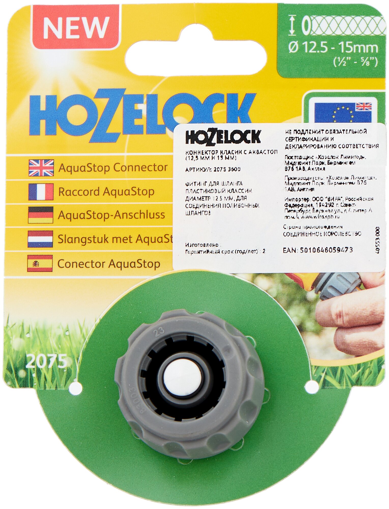 Коннектор Hozelock Классик Аквастоп для концов шланга 1/2 2075 . информация: