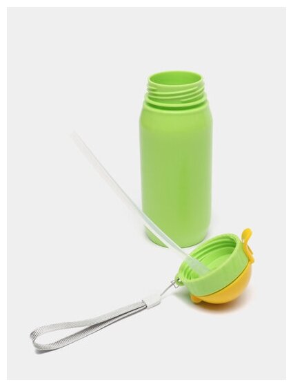 Бутылочка для воды и других напитков с трубочкой 400мл, зеленая информация: