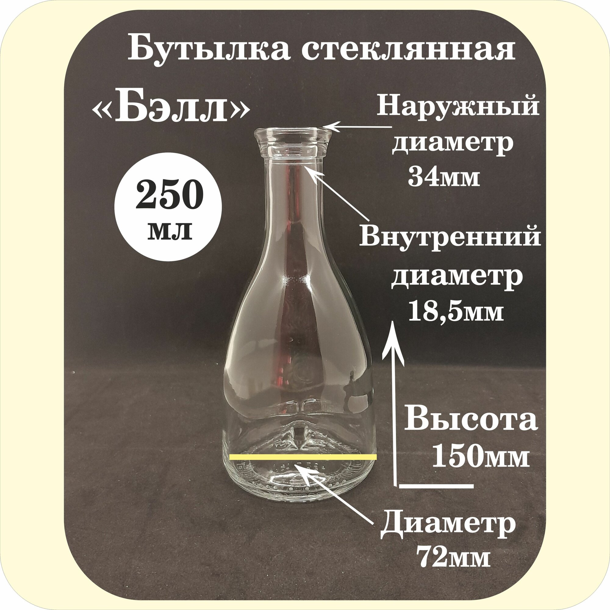 Бутылка стеклянная "Бэлл" 0,25 литра 12шт информация: