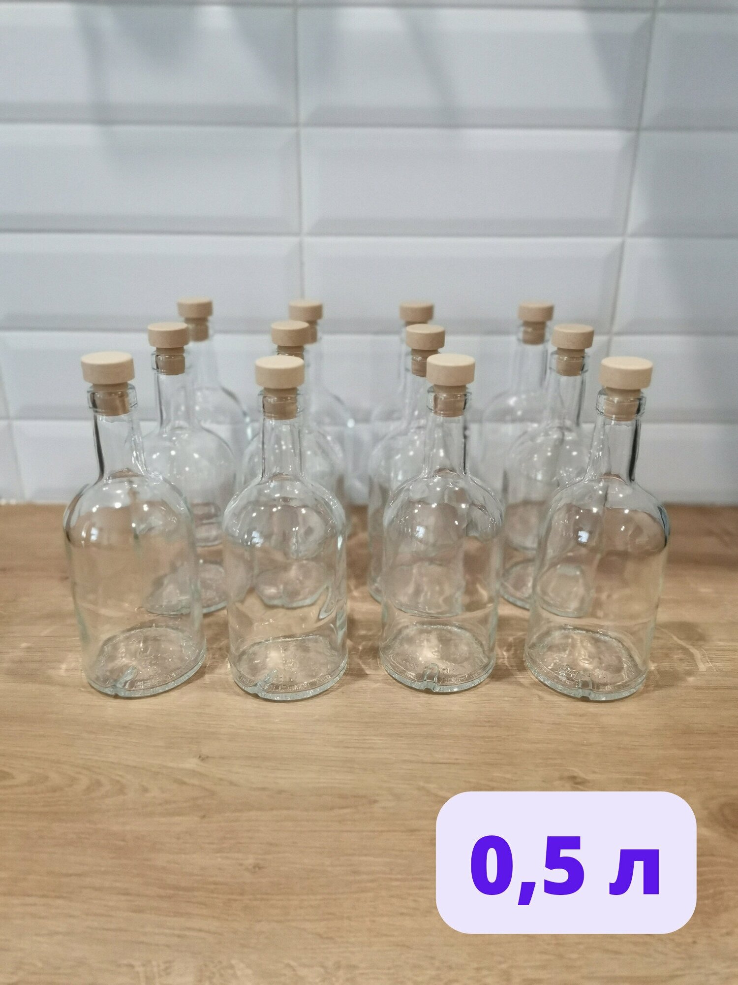 Отзывы на Бутылка стеклянная с пробками 0,5 л, набор 12 шт/ Бутыль для самогона, водки, настоек