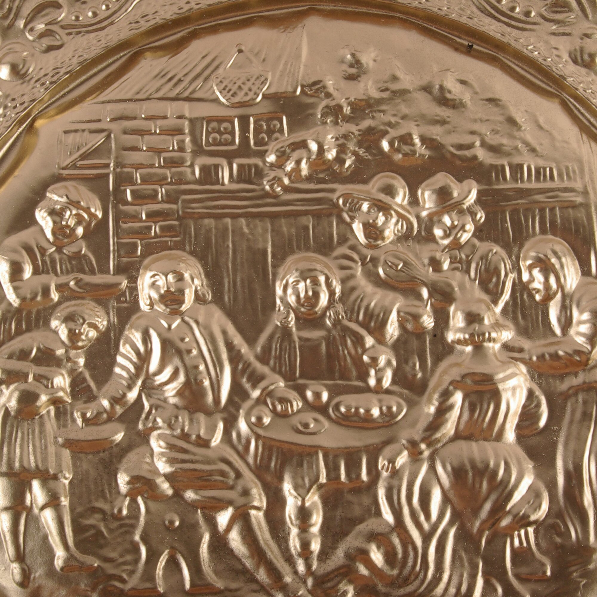 10 цен на Винтажная декоративная настенная тарелка "В трактире". Латунь, чеканка. Англия, середина XX века. Диаметр 62 см.