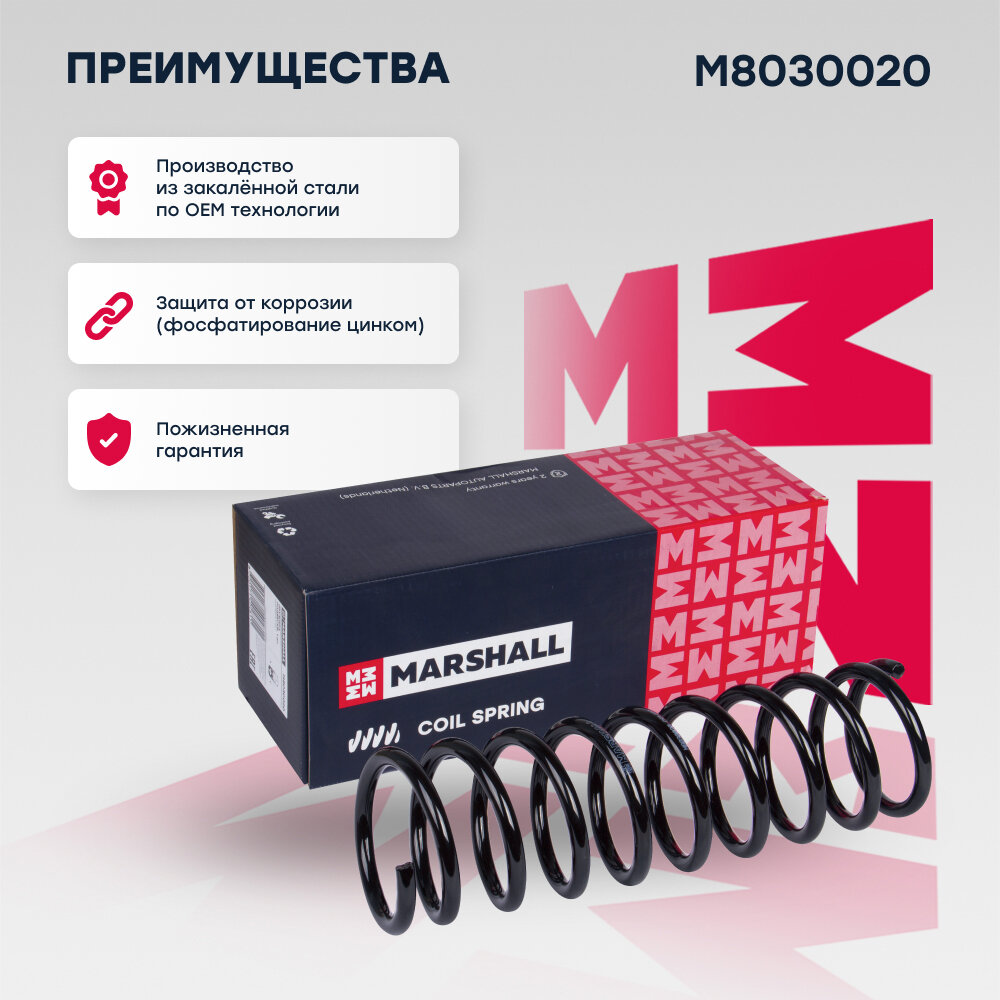 10 цен на Пружина подвески задняя MARSHALL M8030020 для Ford Focus II 04- (седан, хэтчбек) // кросс-номер KYB RA6655, Lesjofors 4227586 // OEM 1064134, 1335393