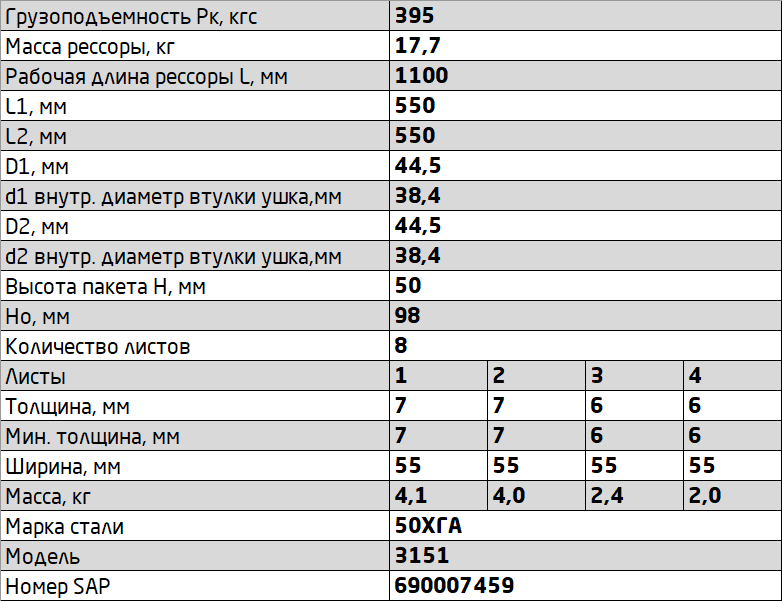 Рессора передняя для УАЗ 469, 3151 8 листов информация:
