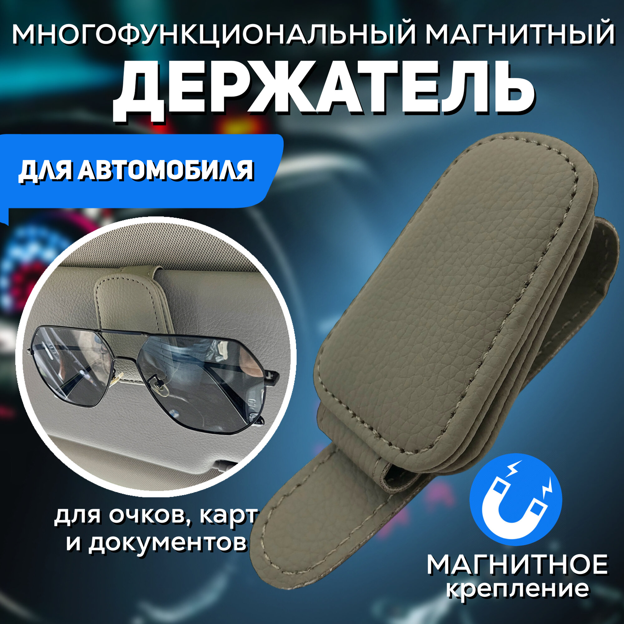 Держатель для очков в автомобиль магнитный, серый, крепление универсальное информация: