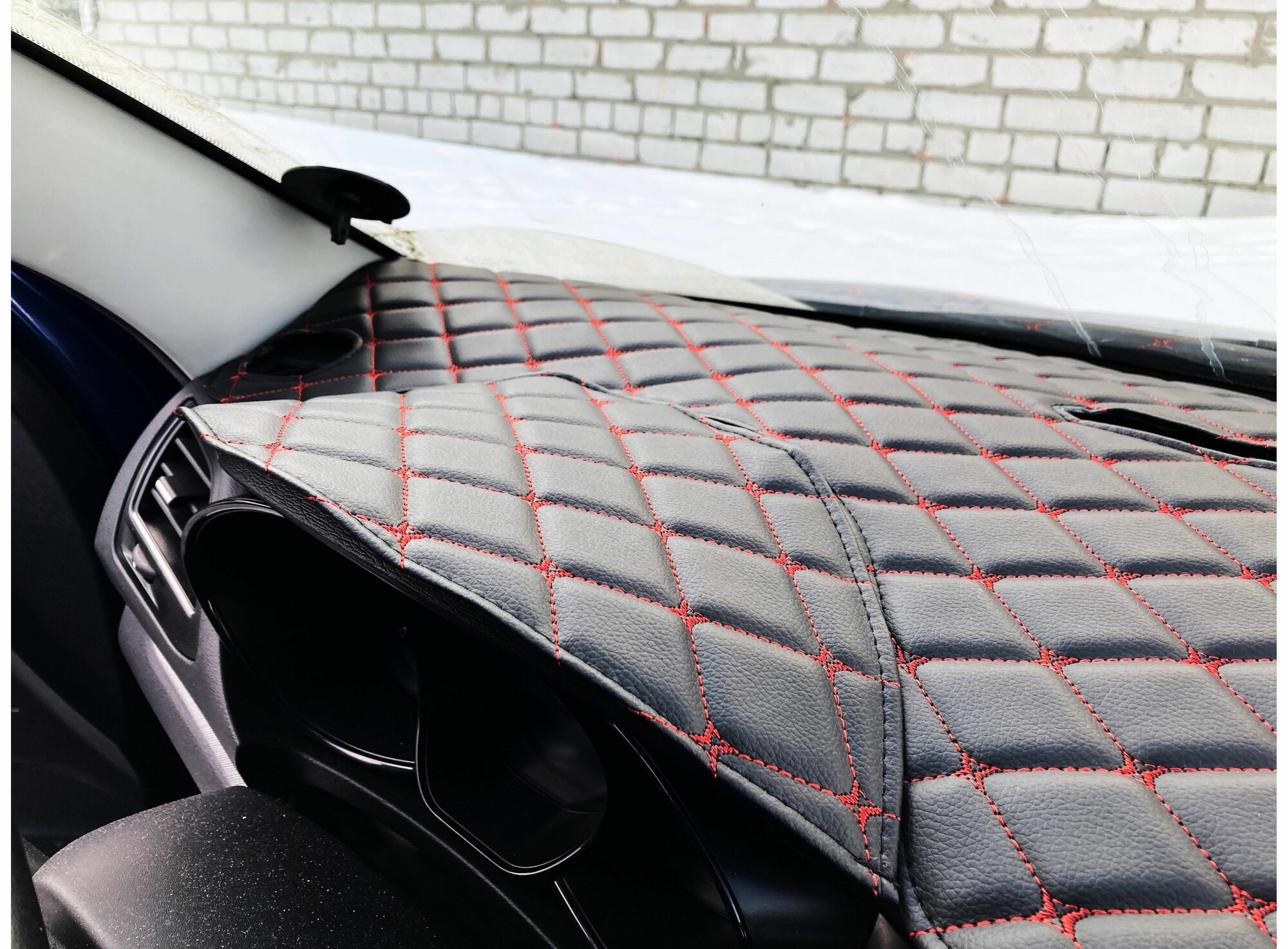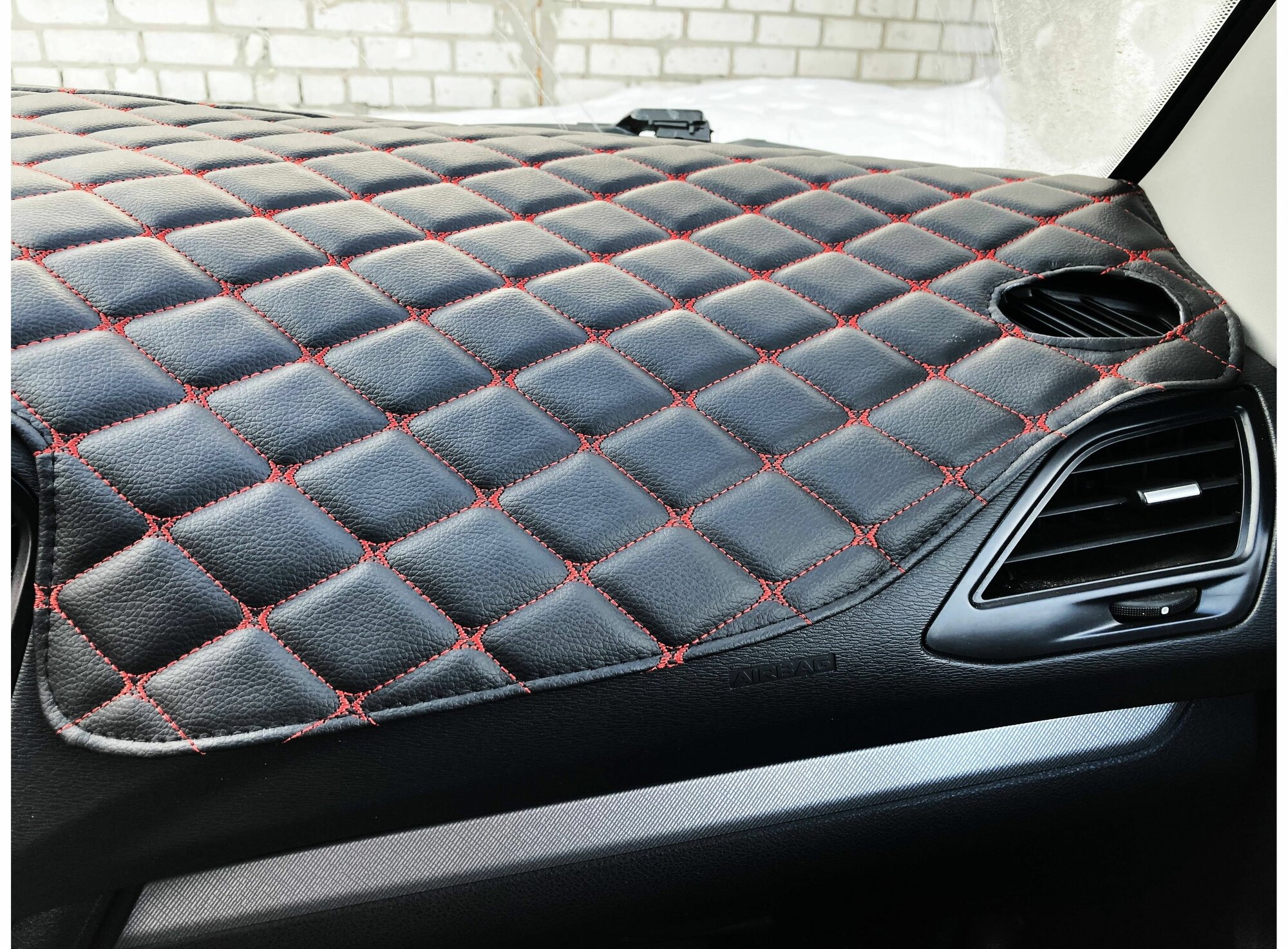Отзывы на Накидка на панель LADA Vesta лада Веста 2015-2021 черный ромб красная строчка