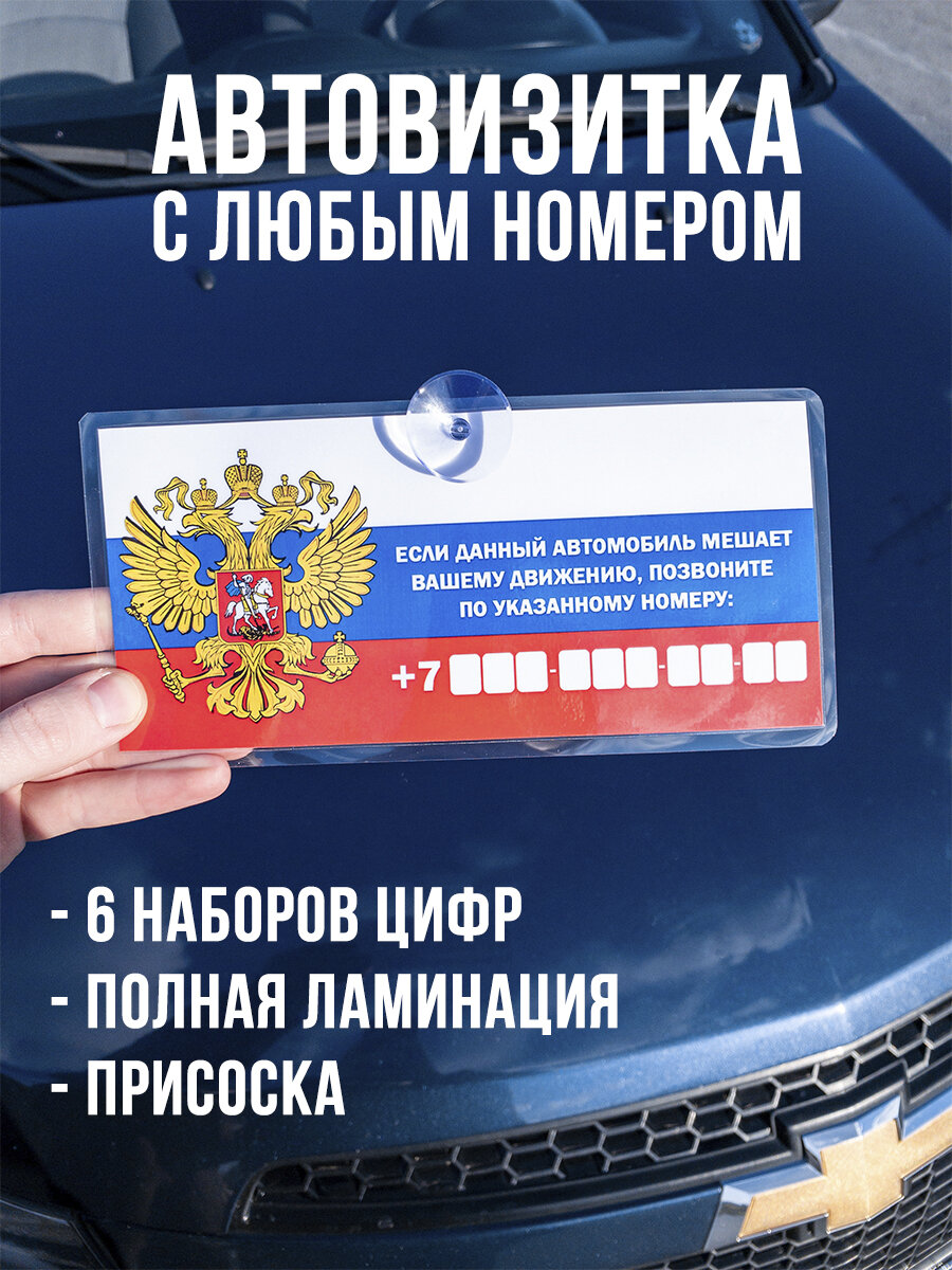 Автовизитка с нoмерoм телефoна, пропуск, парковочная табличка для авто герб РФ информация: