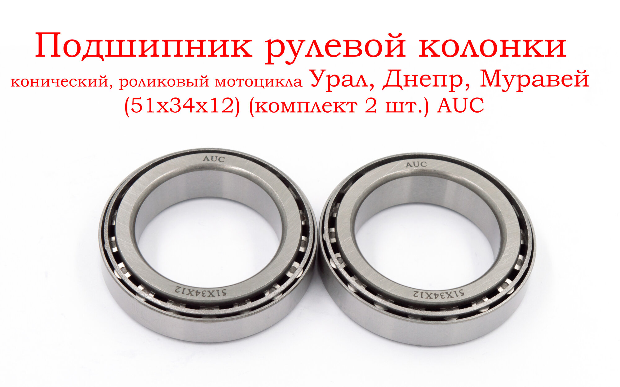 Подшипник рулевой колонки конический, роликовый мотоцикла Урал, Днепр, Муравей (51х34х12) (комплект 2 шт.) AUC информация: