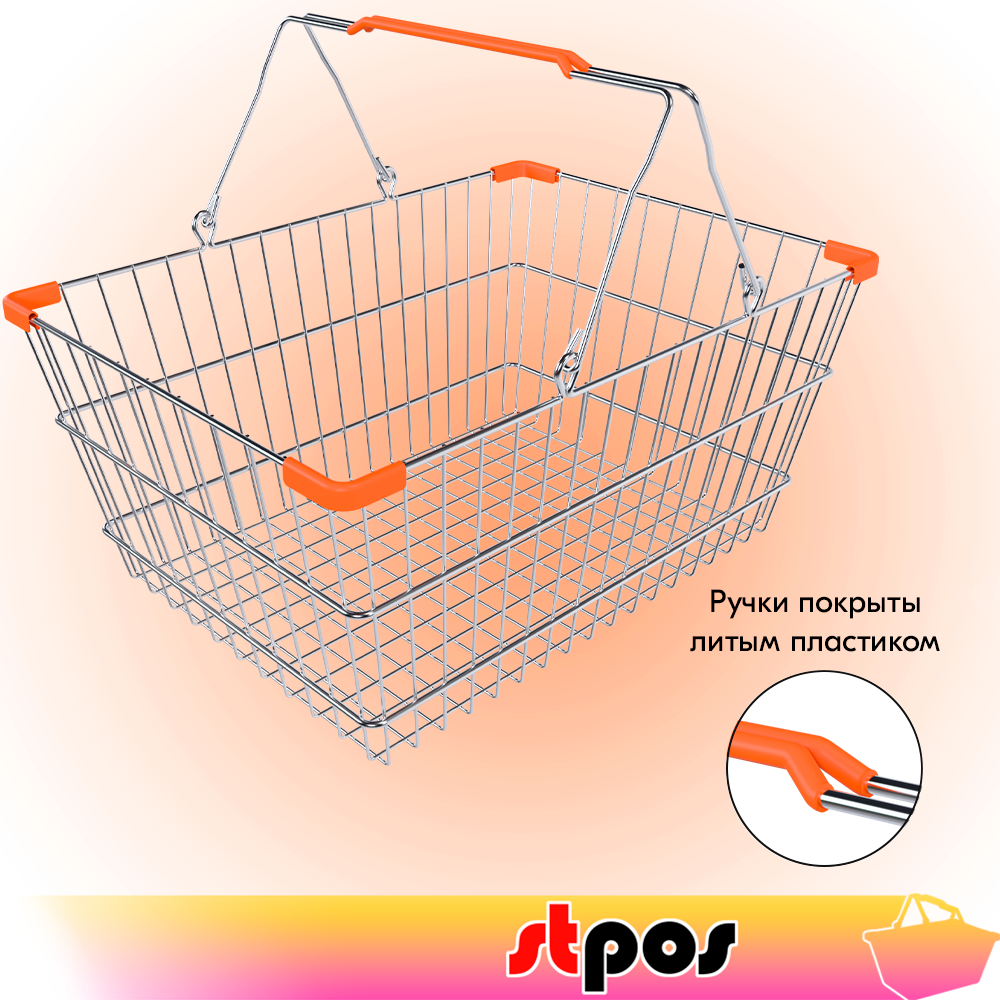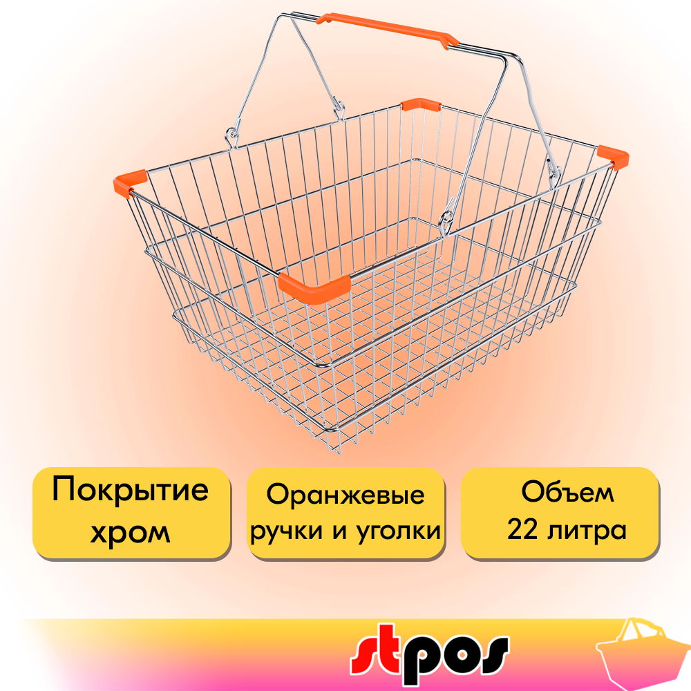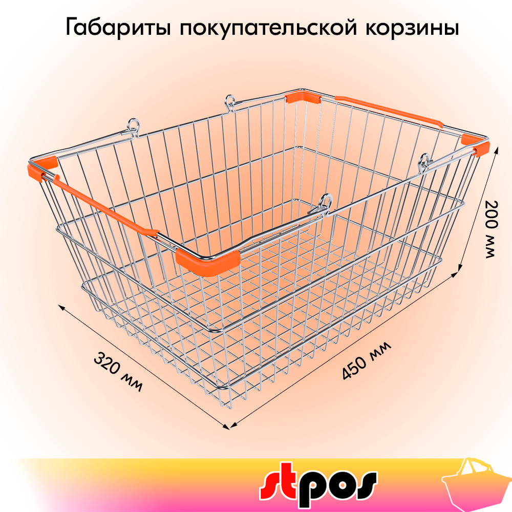 Корзина покупательская металлическая 22л, хром, Оранжевые ручки и уголки, 22CR-OR информация:
