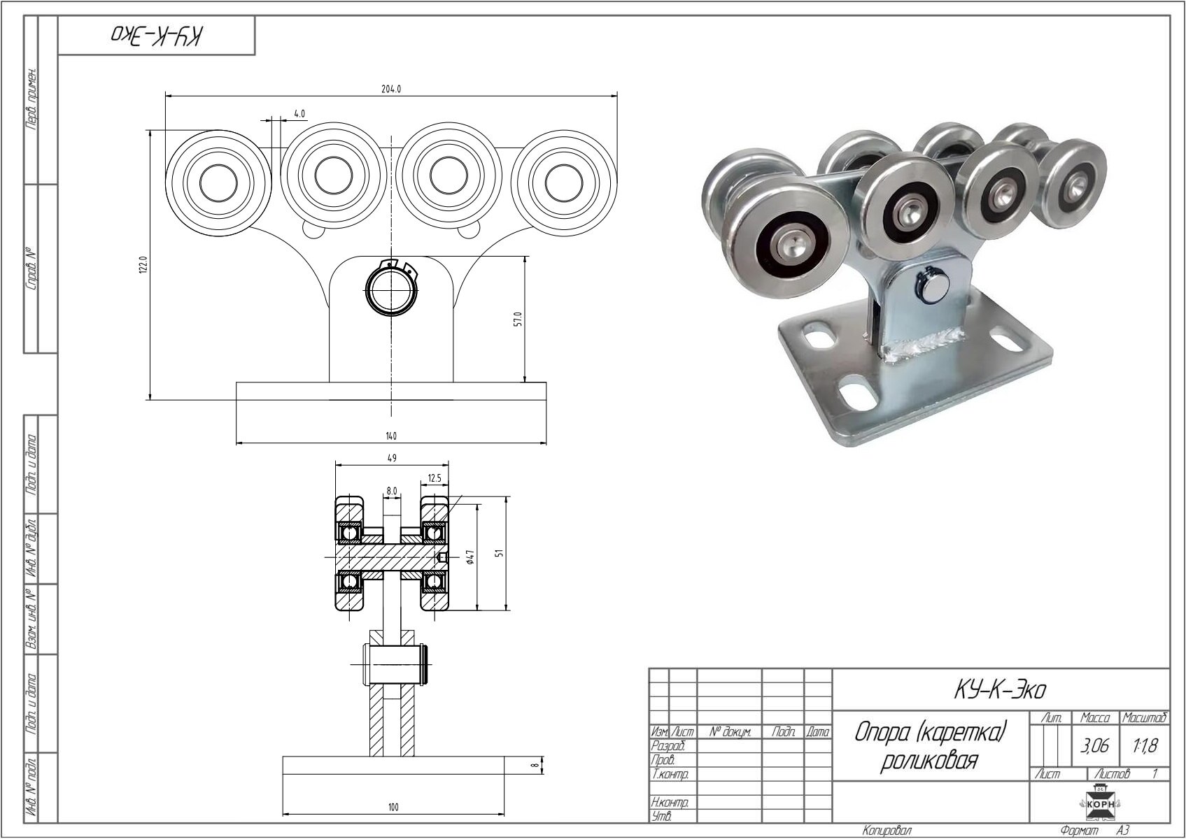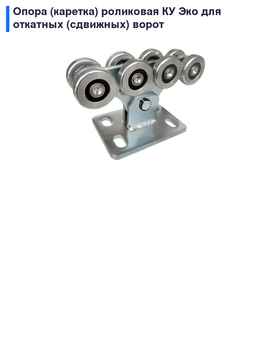 Опора (каретка) роликовая КУ Эко для откатных (сдвижных) ворот информация: