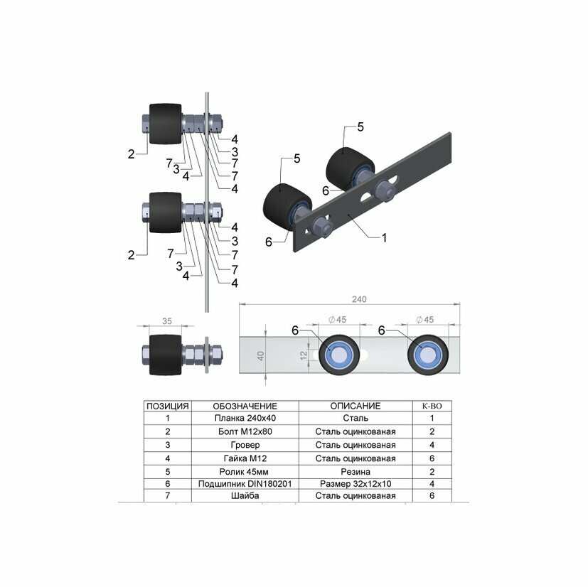 Комплект верхних поддерживающих роликов для откатных ворот на пластине, d. 45 мм, материал резина, 2 шт информация: