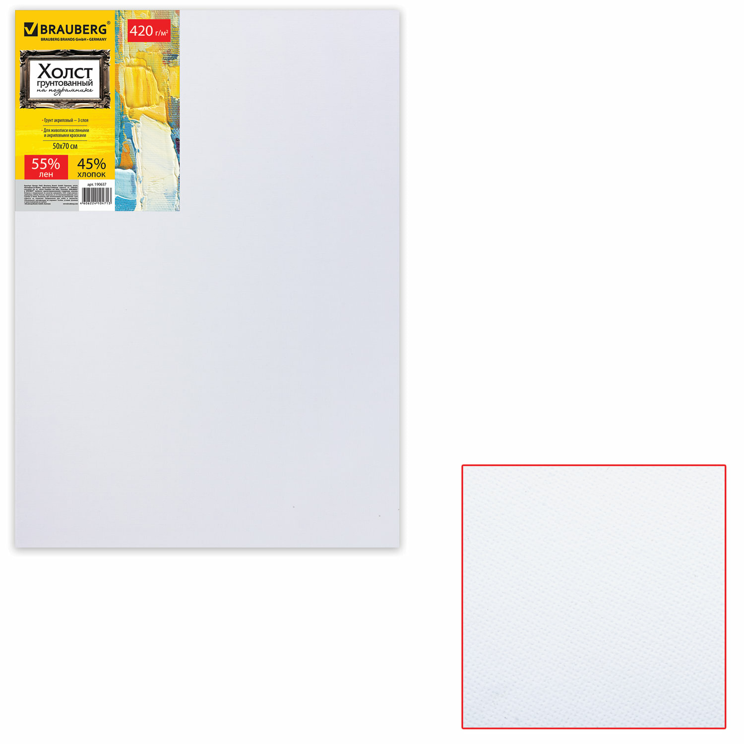 Холст на подрамнике BRAUBERG ART CLASSIC, 50х70см, грунт., 45%хлоп., 55%лен, среднее зерно, 190637 1 367 ₽