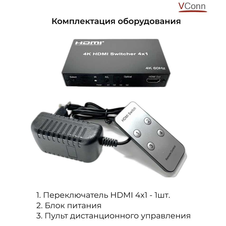 Переключатель (switch) HDMI 4х1+S/PDFI Ultra HD (3D, 4K*2K) /VСonn/ информация: