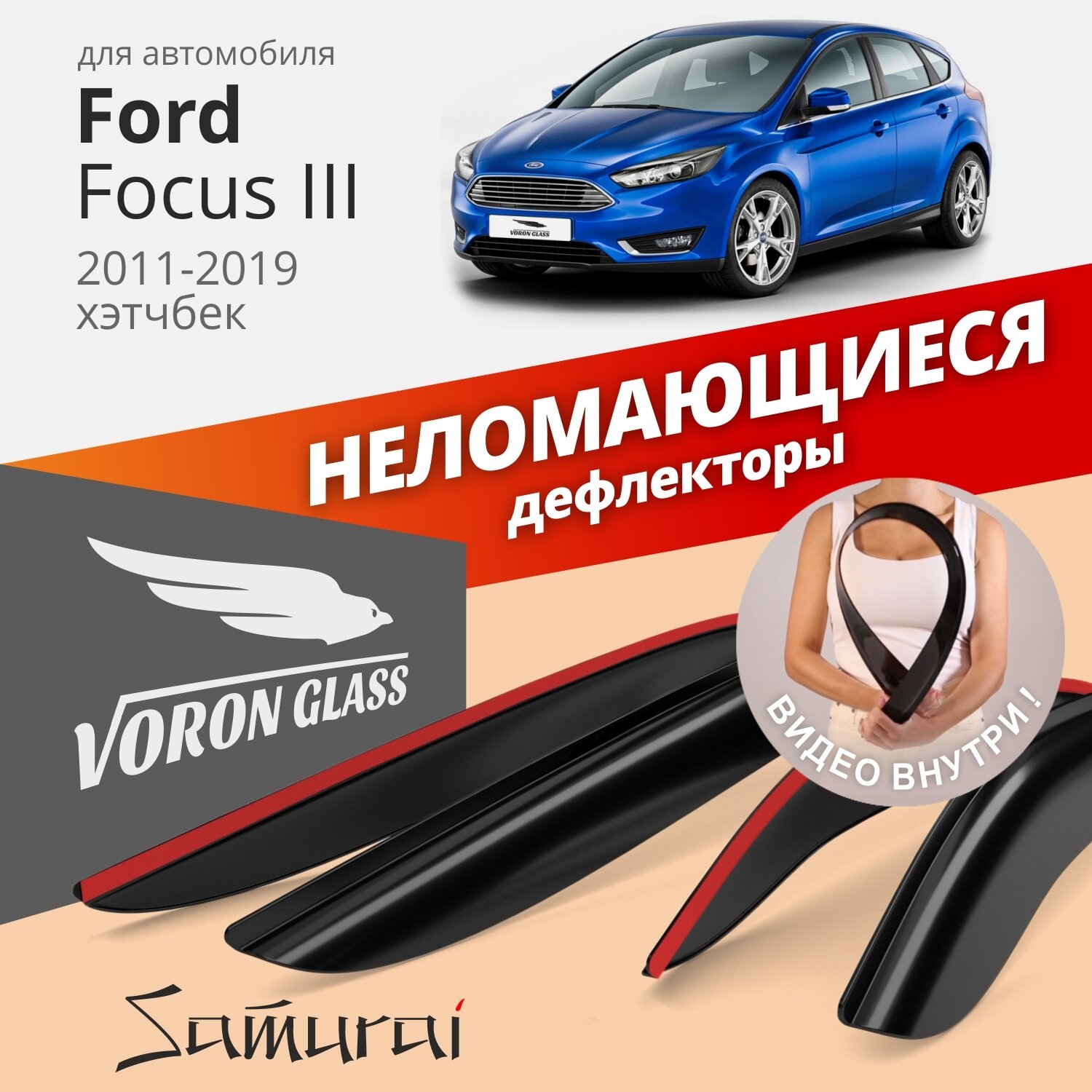 10 цен на Дефлекторы окон неломающиеся Voron Glass серия Samurai для Ford Focus III 2011-2019 хэтчбек накладные 4 шт.