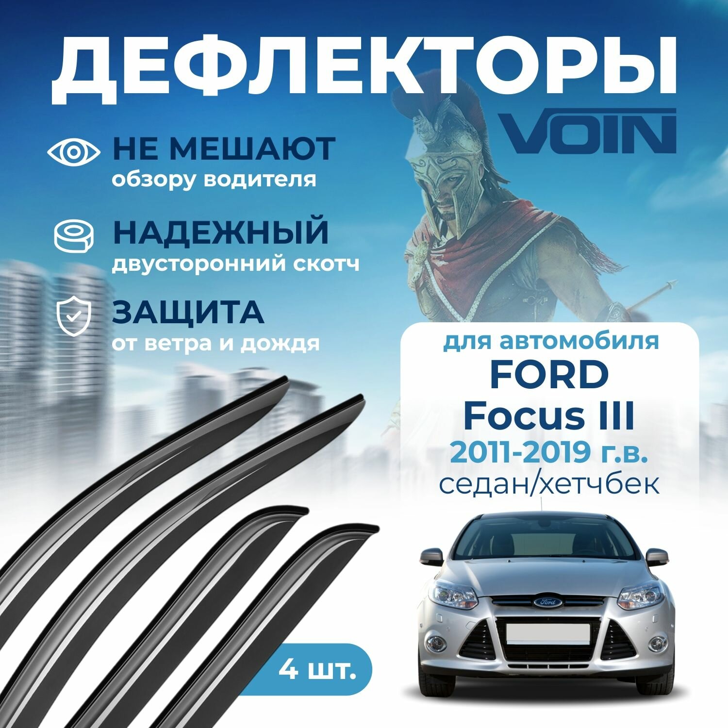 10 цен на Дефлекторы окон Voin на автомобиль Ford Focus III 2011-2019 седан/хетчбэк, накладные 4 шт