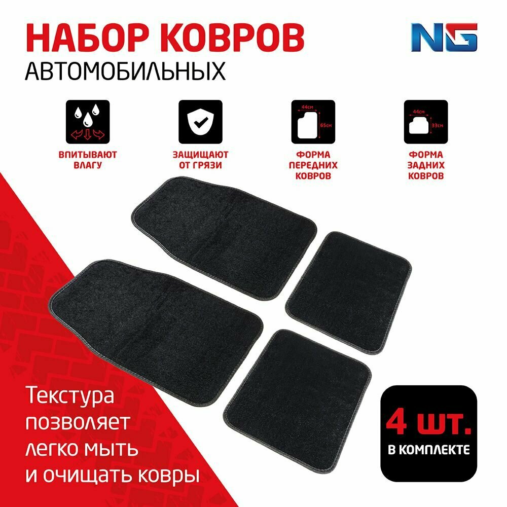 10 цен на NG Набор ковров ворс 4шт, универсальные, черные Dark