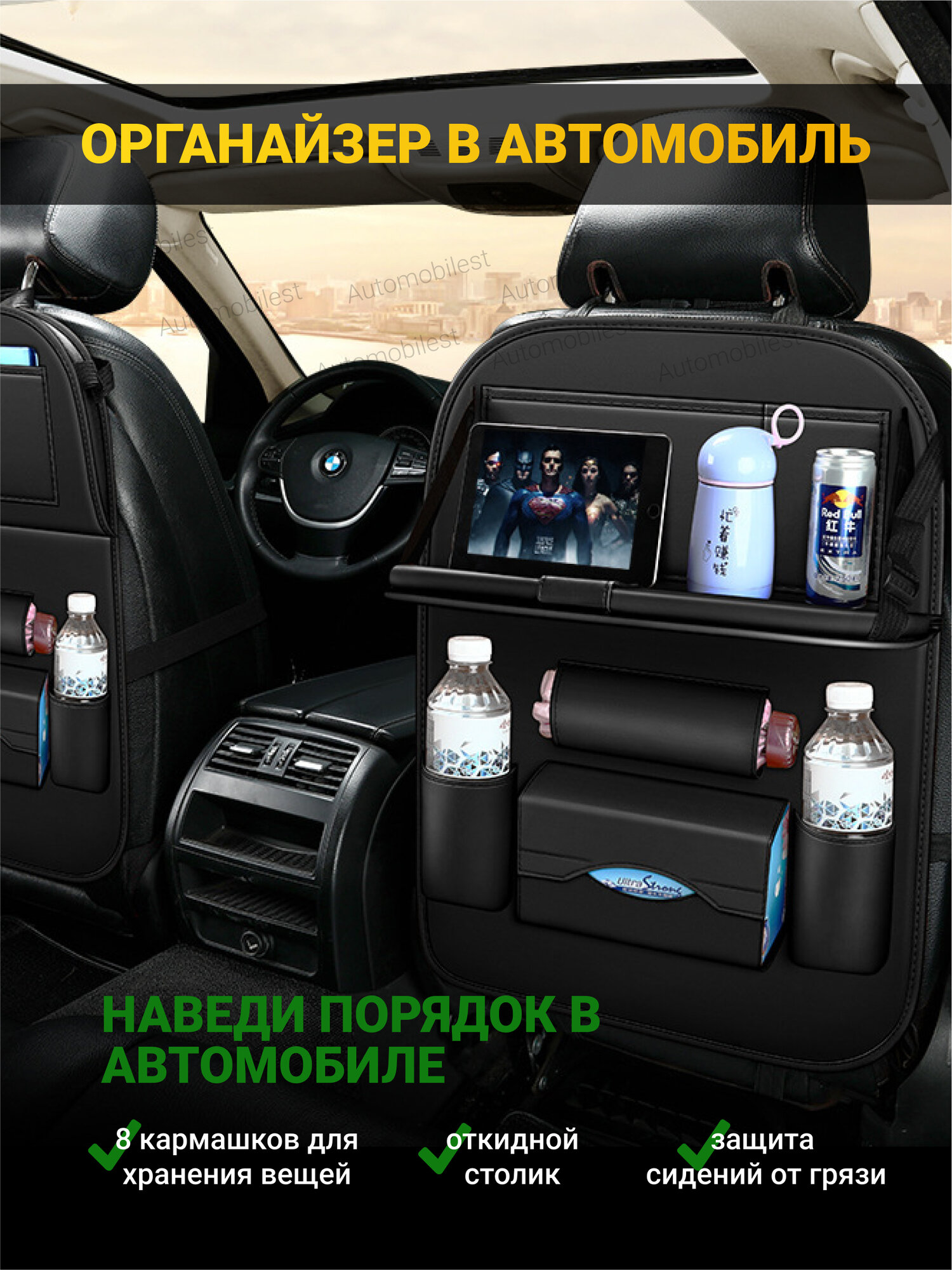Отзывы на Органайзер черный на сиденье накидка со столиком в машину 65 x 45
