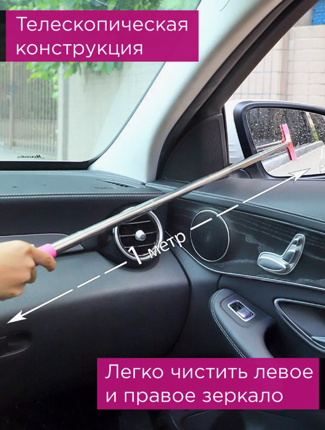 10 цен на Стеклоочиститель зеркала заднего вида телескопический / щетка для боковых зеркал/ водосгон / скребок, розовый