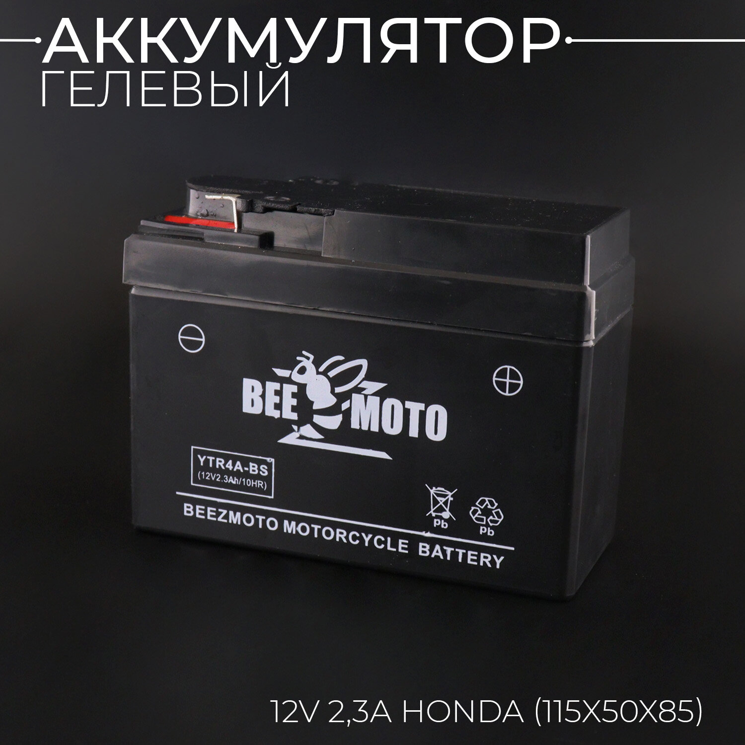 АКБ 12V 2,3А гелевый, Honda (115x50x85, черный, mod:YTR4A-BS) 10.2023 "BEEZMOTO" информация: