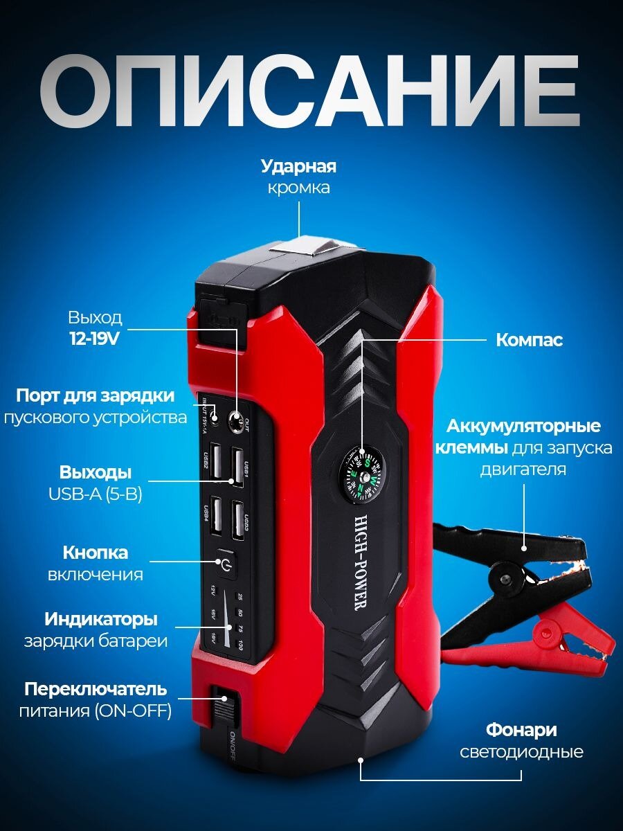 Пусковое зарядное устройство /паувербанк/LED фонарик,лампа SOS/ со встроенным компасом/28000 мА•ч, макс.ток 800A/ джамп стартер ,Jump Starter информация: