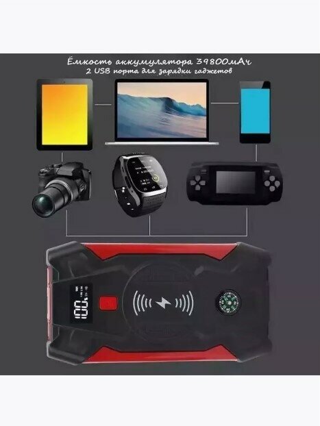 Пусковое зарядное устройство /паувербанк/LED фонарик,лампа SOS/ со встроенным компасом/39800 мА•ч, макс.ток 1200 A/ джамп стартер ,Jump Starter информация: