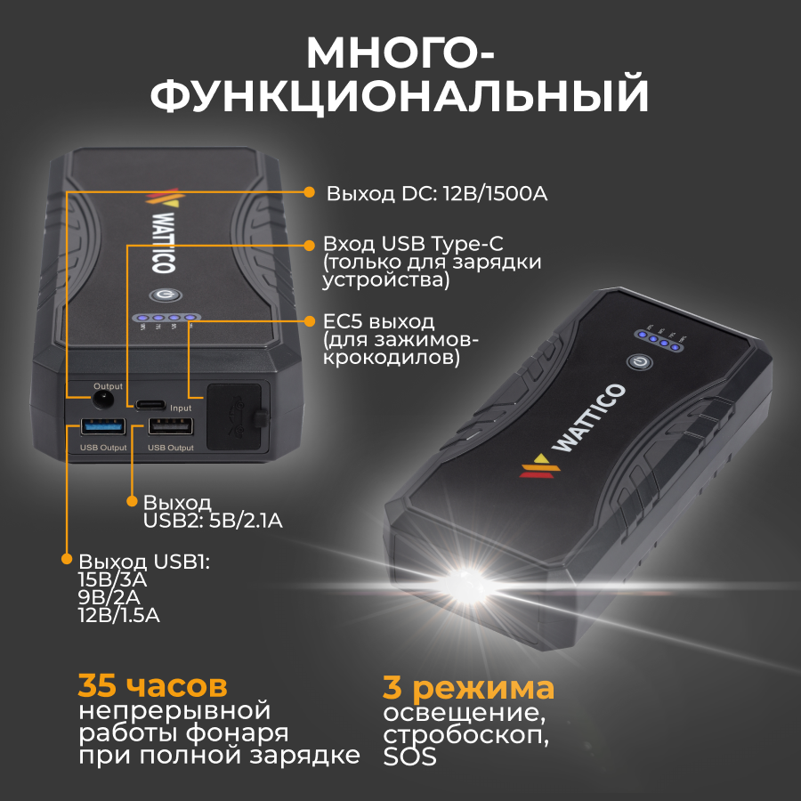 Пусковое устройство для автомобиля Wattico Jump Starter Compact 1500A информация: