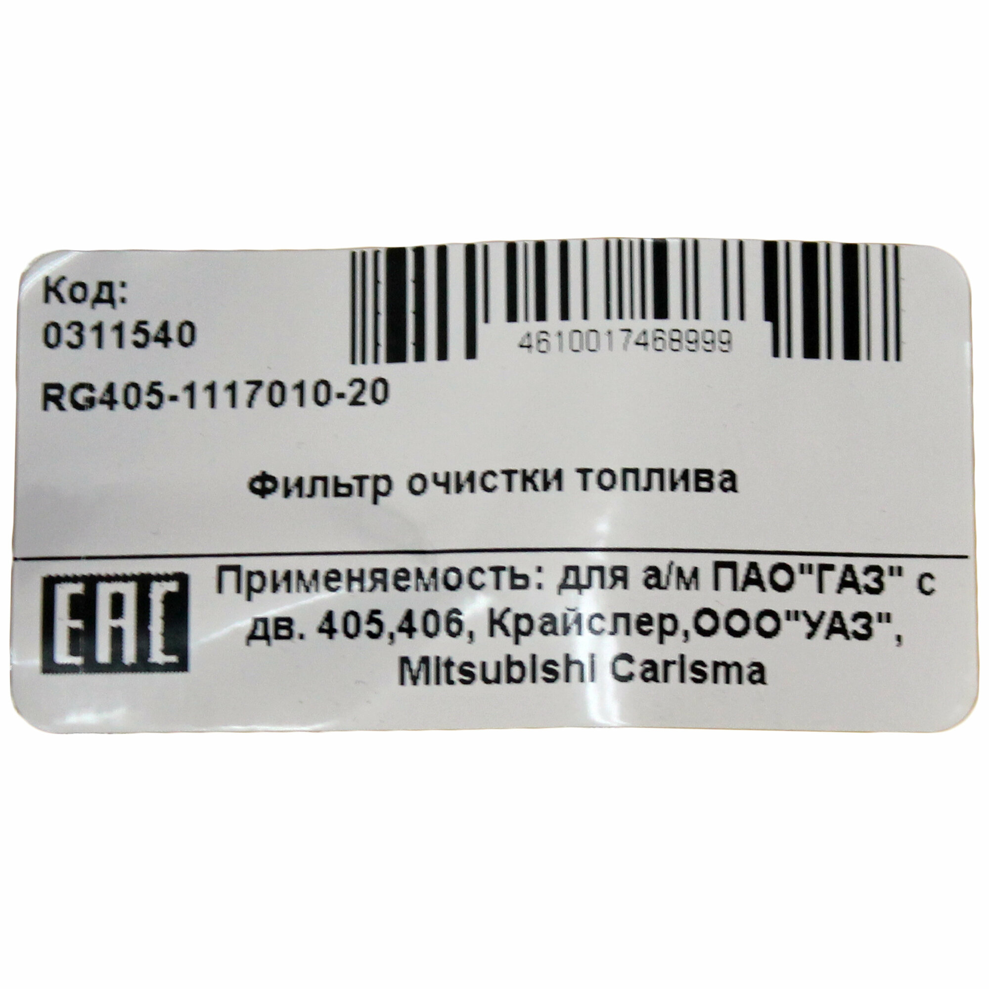 Топливный фильтр для а/м с дв. 405, 406, Крайслер, УАЗ, Mitsubishi, Volvo Riginal RG405-1117010-20