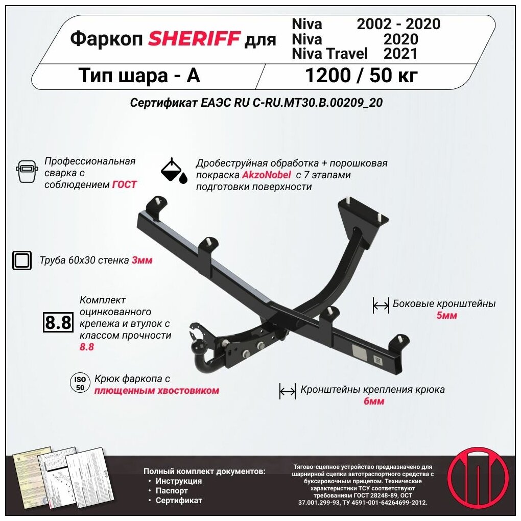 Фаркоп SHERIFF ТСУ для LADA 4x4 (Лада 4на4) 1977 - / 4x4 Urban (Урбан) 2014 - / Niva Legend (Легенд) 2021 - , 800 / 75 кг, Шар тип - A, 4520.12