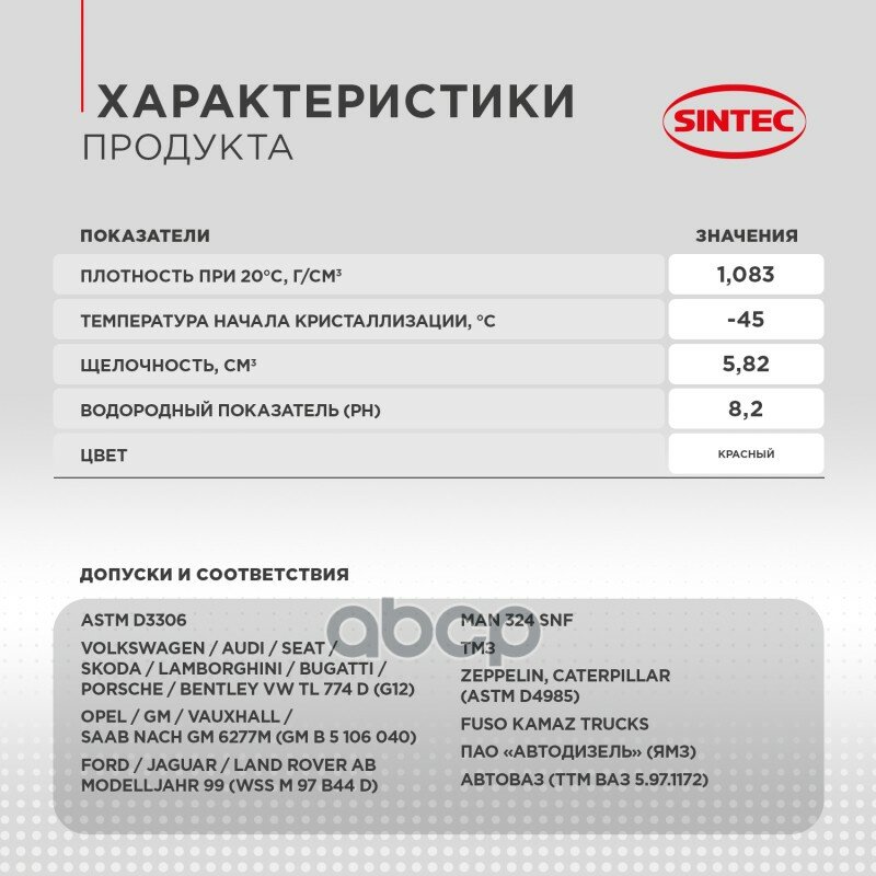 Антифриз Sintec Antifreeze Luxe G12+ Red -45 (Старый Арт. 613504) SINTEC арт. 990572 информация: