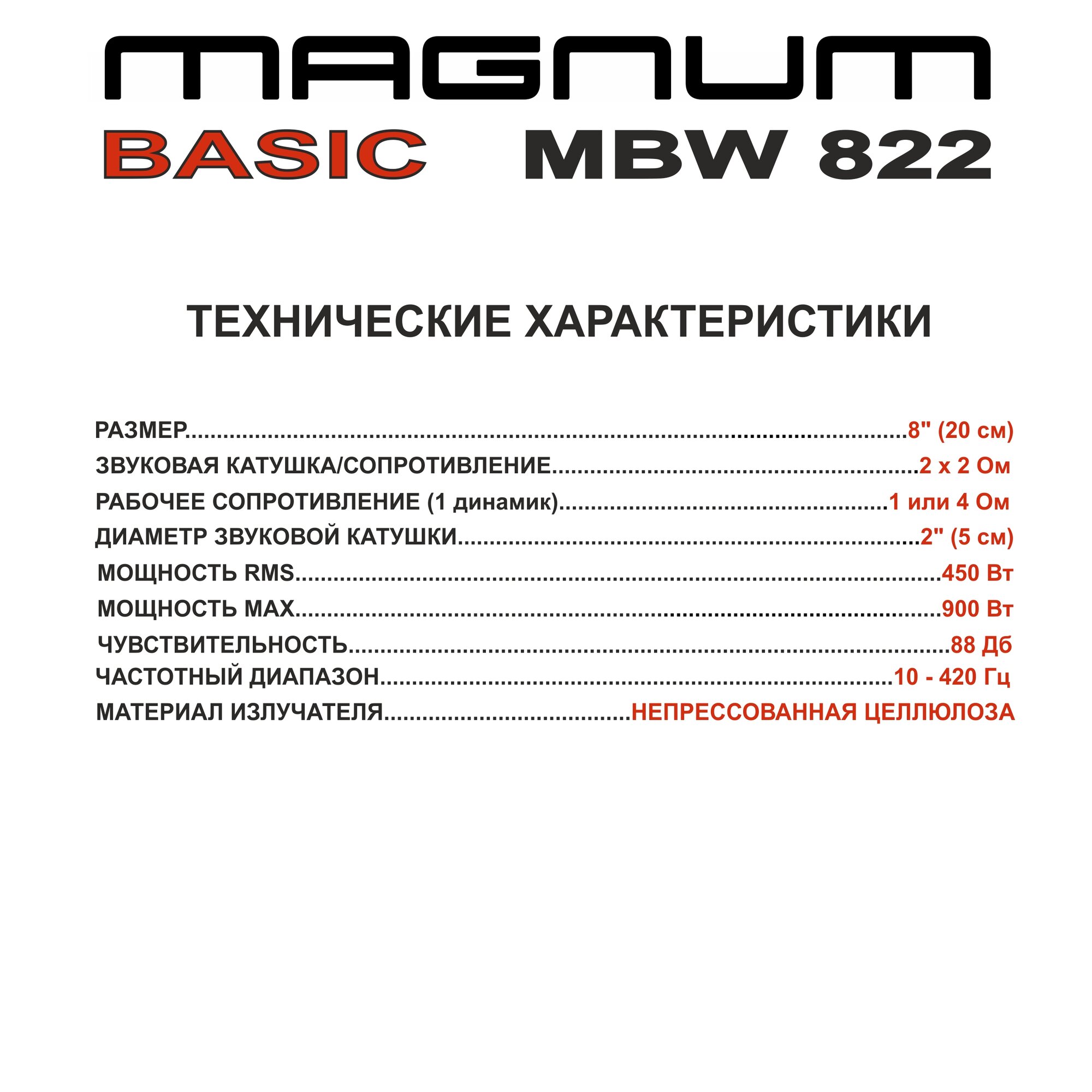 Автомобильный сабвуфер MAGNUM MBW 822 информация: